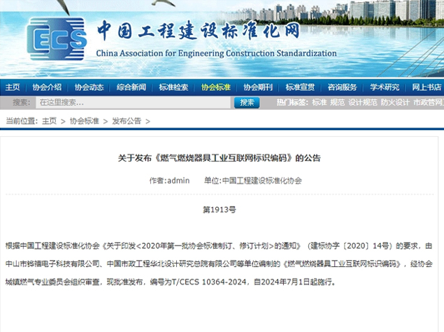 《燃氣燃燒器具工業互聯網標識編碼》正式發布,為行業標識體系注入新動力