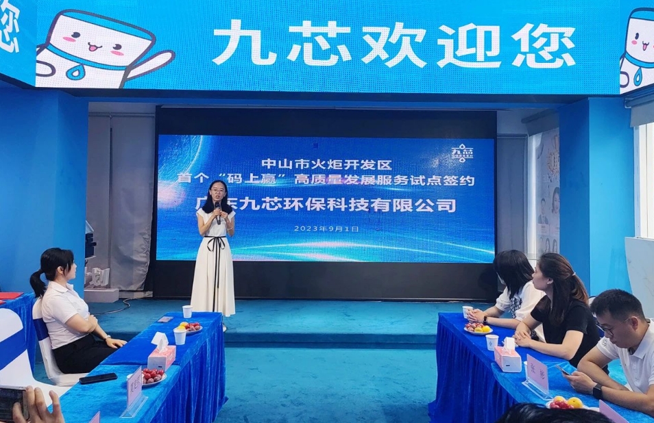 9月1日,中山市火炬開發(fā)區(qū)首家“碼上贏”高質(zhì)量發(fā)展服務(wù)試點企業(yè)——廣東九芯環(huán)保科技有限公司正式簽約落地。火炬區(qū)科創(chuàng)發(fā)展和投資促進(jìn)局副局長 鄭穎新;廣東九芯環(huán)保科技有限公司營銷總監(jiān) 梁錦炎、人力資源總監(jiān) 梁文興;中國人民財產(chǎn)保險股份有限公司中山市分公司火炬開發(fā)區(qū)負(fù)責(zé)人 王艷蘭;國家工業(yè)互聯(lián)網(wǎng)泛家居二級節(jié)點平臺產(chǎn)業(yè)研究院副院長 梅慧儀等領(lǐng)導(dǎo)及項目代表出席會議。