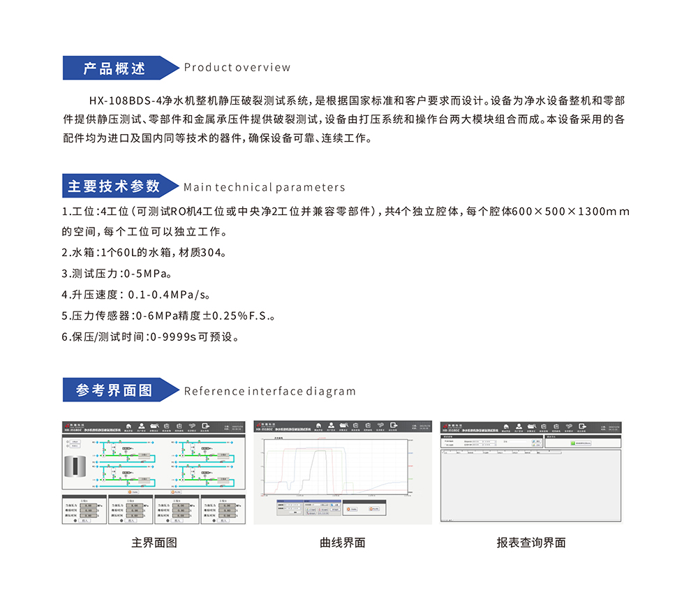 HX-108BDS-4凈水機靜壓爆破測試系統