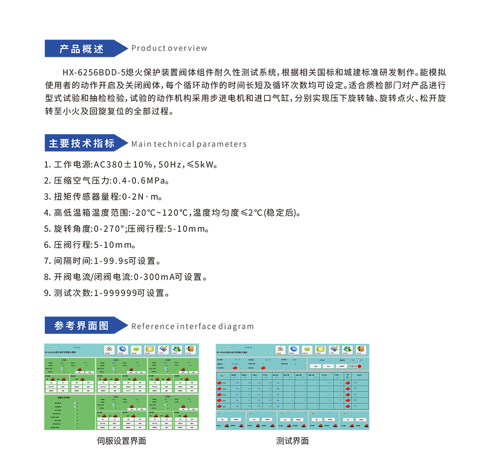 HX-6256BDD-5熄火保護裝置閥體組件耐久性測試系統(tǒng)